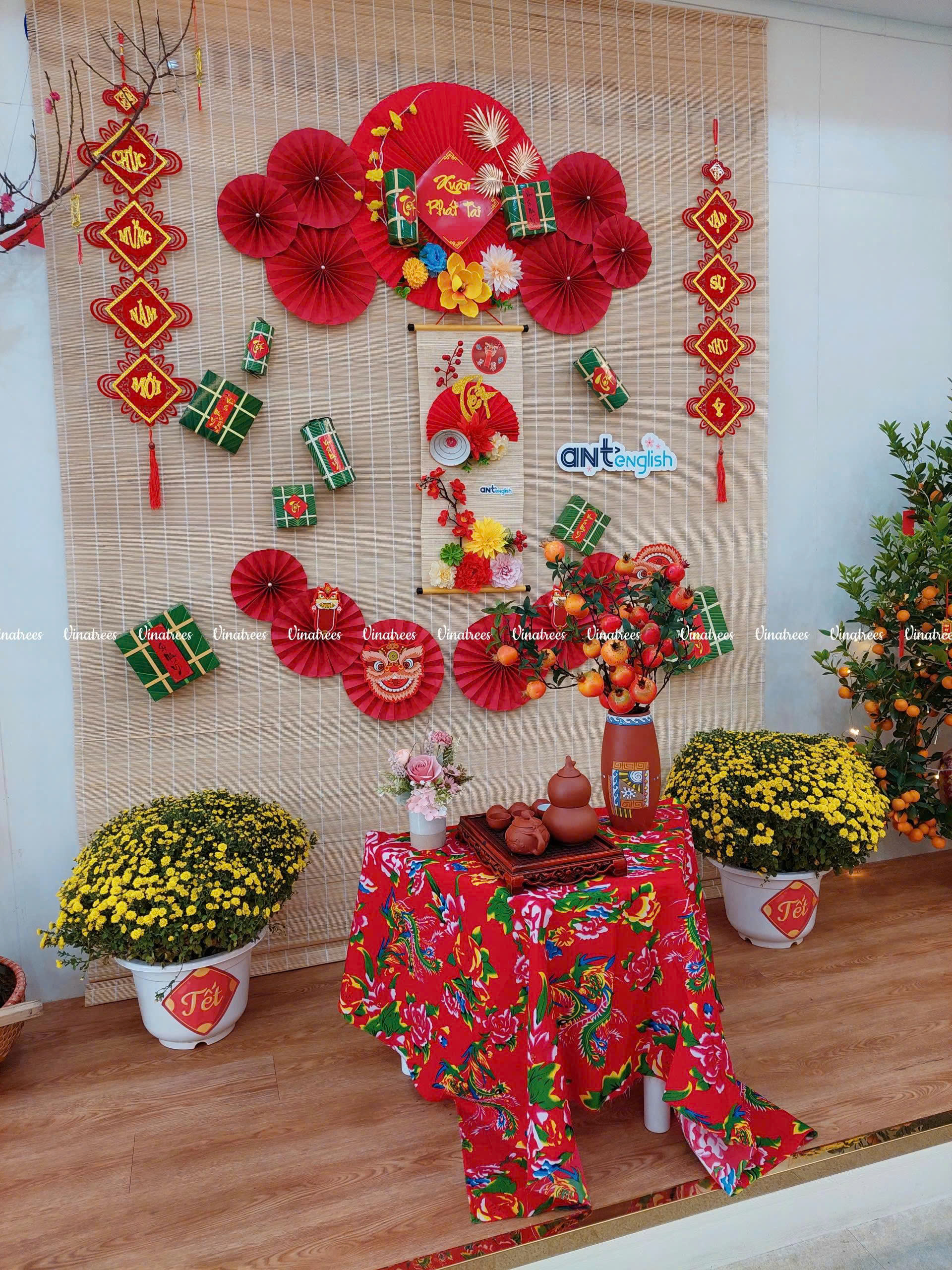 Màu đỏ vẫn là chủ đạo cho sự may mắn, nhưng sắc tím của lan và sắc vàng của quất cảnh được phối trộn tinh tế để tạo cảm giác nhẹ nhàng, không bị chói mắt, phù hợp với mọi không gian chung cư hay biệt thự.